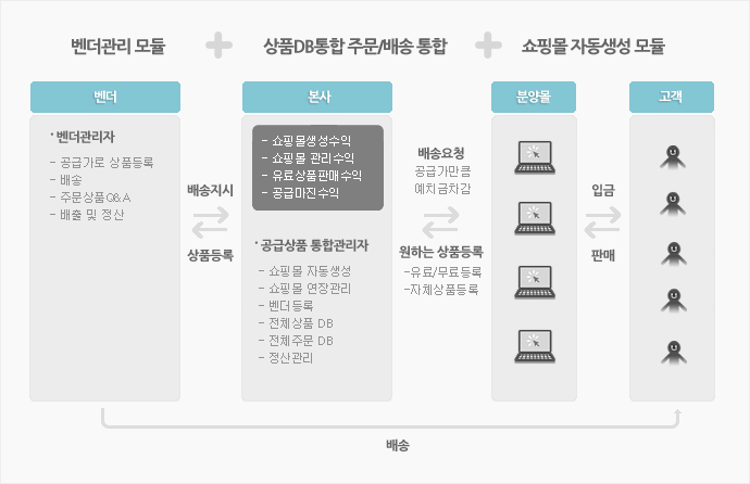 - ºÐ¾ç¸ô ÀÚµ¿»ý¼º ¹× °ü¸®±â´É - ¼îÇθô ½Å±Ô/¿¬Àå °áÁ¦ ¹× ÇöȲ°ü¸® - ºÐ¾ç¸ôµéÀÇ ºÎ°¡¼ºñ½º °áÁ¦ ¹× ÇöȲ°ü¸® |