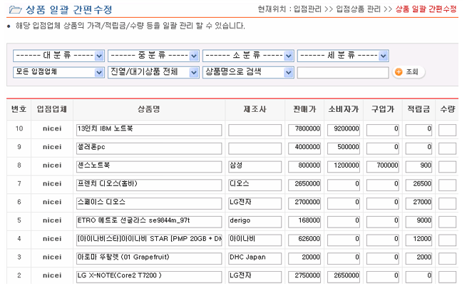 ÀÔÁ¡¾÷üÀÇ »óǰ Àϰü ¼öÁ¤