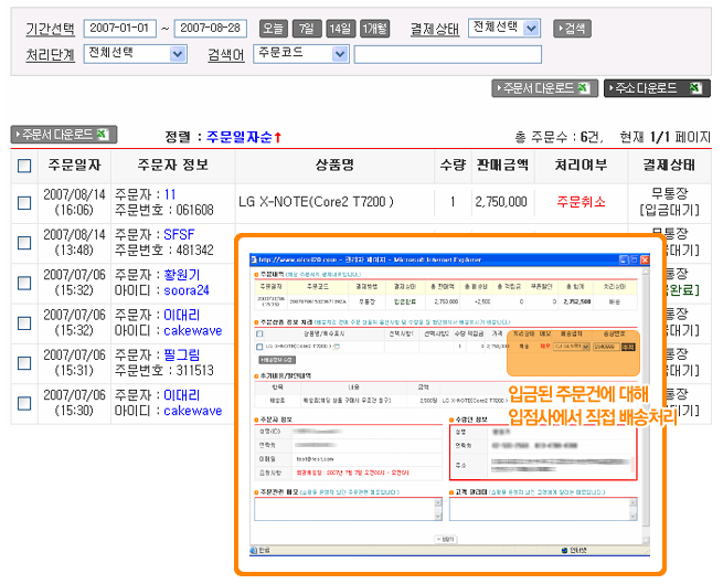 - º»»ç¿¡¼ ÀÔ±ÝÇÑ ÁÖ¹®¼¿¡ ´ëÇØ Á÷Á¢ ¹è¼Ûó¸®